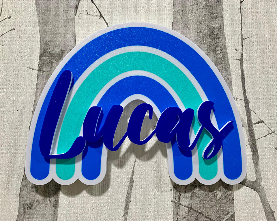 Tus colores favoritos: Sabemos que cada habitación tiene su propio estilo. Por eso, puedes elegir entre nuestra amplia gama de tonalidades (desde pasteles suaves hasta colores vibrantes) para personalizar tanto el arcoíris como el nombre.